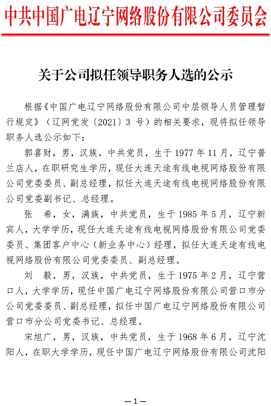 中國廣電遼寧網(wǎng)絡(luò)股份有限公司(簡稱中國廣電遼寧公司)前身為成立于2010年2月的北方聯(lián)合廣播電視網(wǎng)絡(luò)股份有限公司,系中央國有文化企業(yè)——中國廣電網(wǎng)絡(luò)股份有限公司省級子公司、遼寧省國有文化高新技術(shù)企業(yè),是按照現(xiàn)代企業(yè)制度打造的集網(wǎng)絡(luò)建設(shè)、傳輸、運營及多功能開發(fā)與應(yīng)用為一體綜合網(wǎng)絡(luò)運營商。